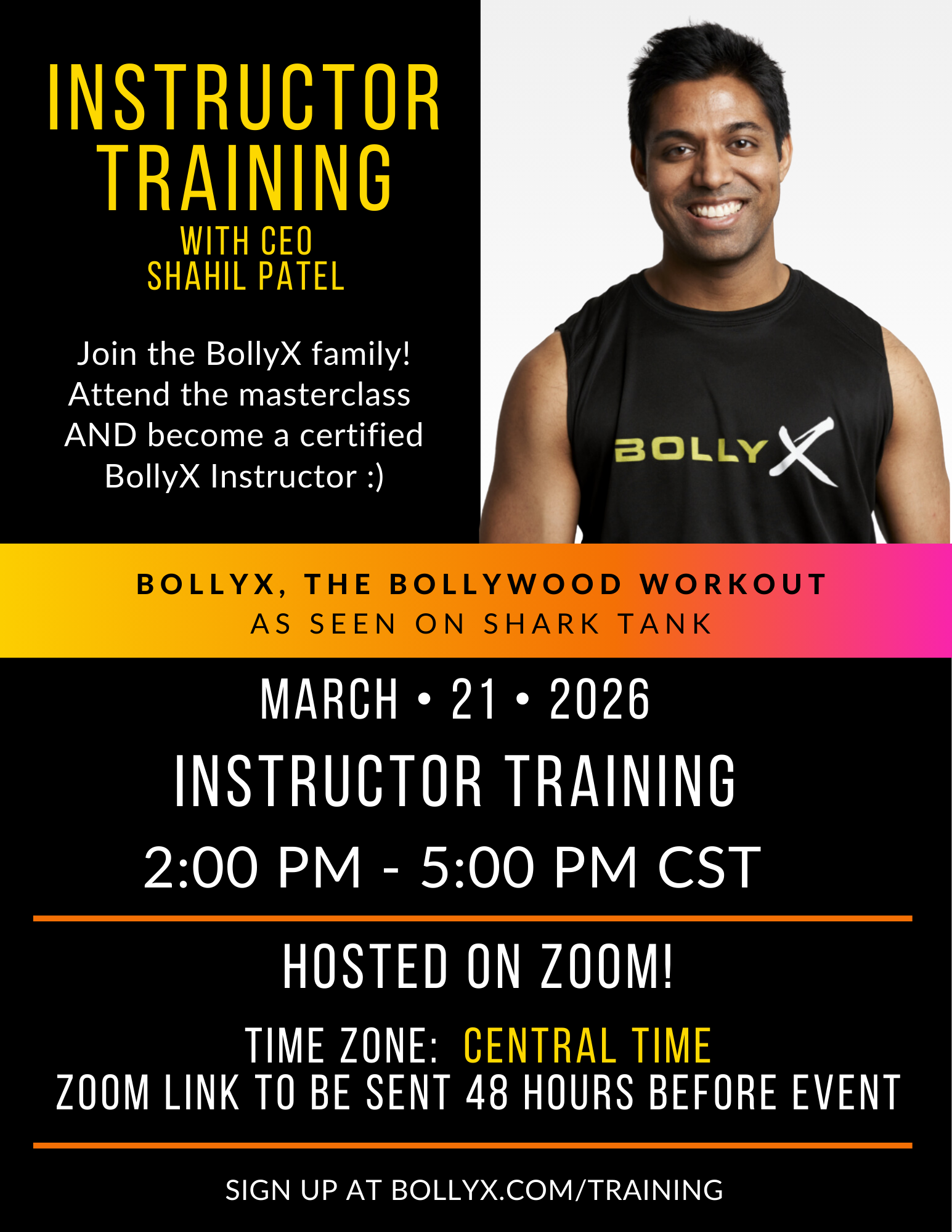 Do you LOVE Bollywood music? Are you looking to inspire others to get fit through dance? You've come to the right place! We are building the world's largest Bollywood-inspired fitness family with over 5,000 instructors certified across 30+ countries and can't wait to welcome you into our family! Visit bollyx.com/training for complete details about the BollyX Instructor Training & Certification Program.